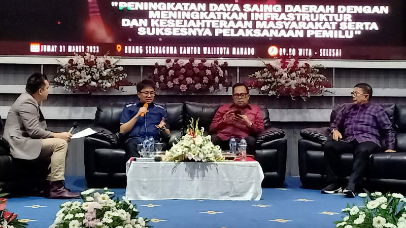 Wali Kota Andrei Angouw saat di Polresta Manado mengikuti upacara sekaligus syukuran Hari Bhayangkara ke-76.