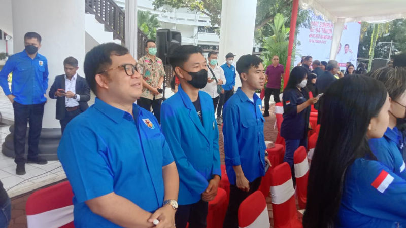 Manado, EkuatorNews.com – Ketua Komite Nasional Pemuda Indonesia (KNPI) Manado, Natanael Pepah, menghadiri upacara peringatan Hari Sumpah Pemuda di Kantor Gubernur Sulawesi Utara (Sulut), Jumat (28/10/2022).