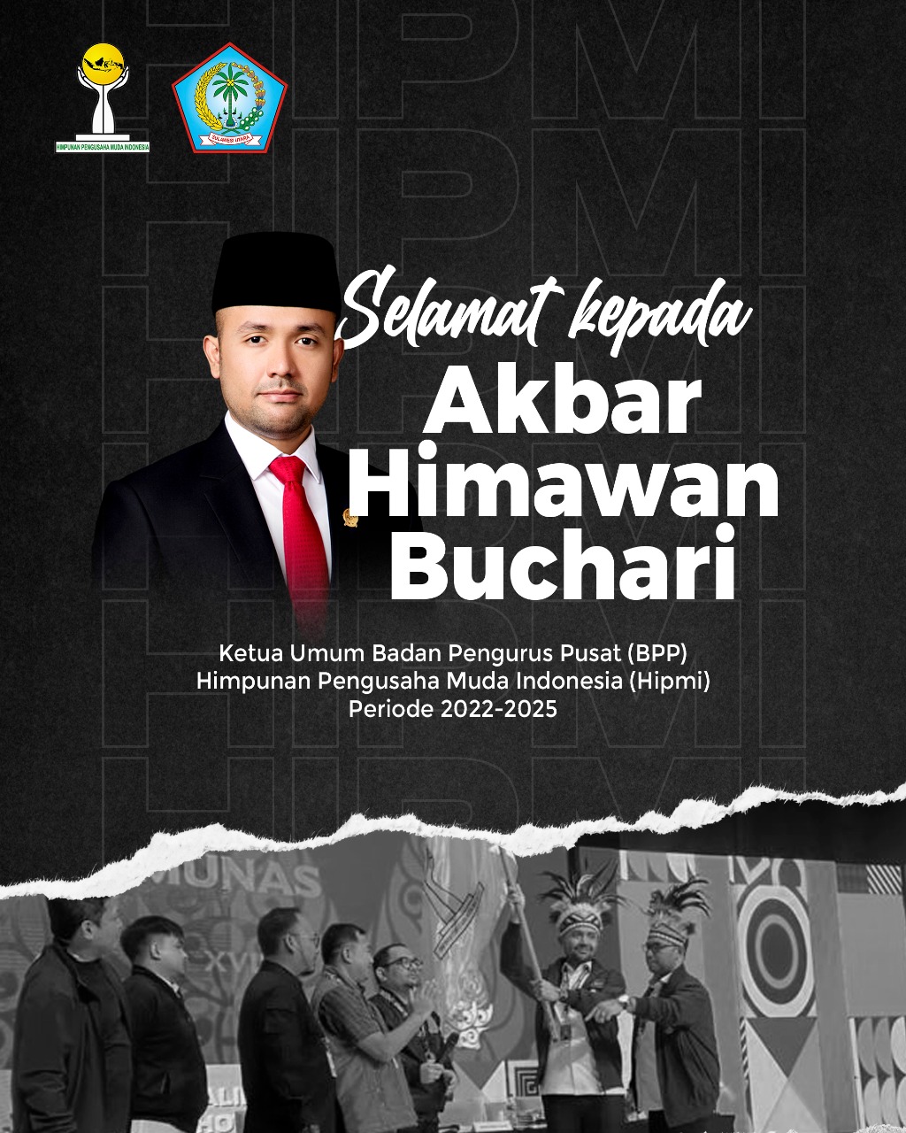 “Banyak selamat untuk Kanda Akbar Buchari yang telah terpilih sebagai Ketua Umum Hipmi pada tanggal 23 November 2022,” ucapnya.