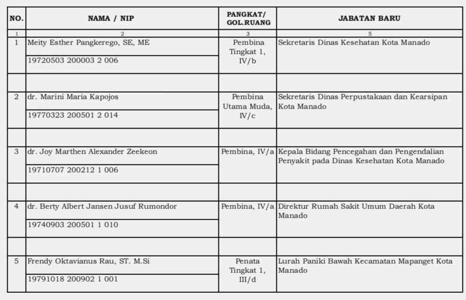 Berikut 5 nama pejabat yang dilantik;