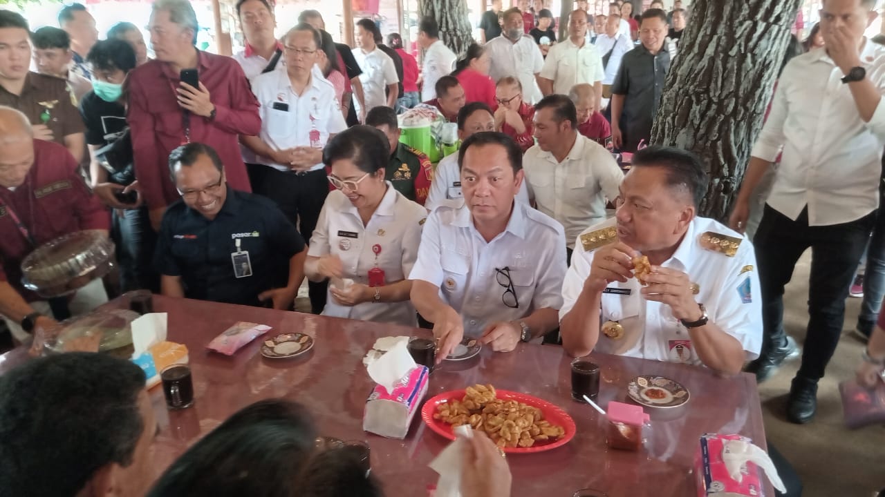 Tomohon,Ekuatornews.com- Gubernur Sulawesi Utara Olly Dondokambey, S.E. bersama Walikota Tomohon Caroll Joram Azarias Senduk SH dan Wakil Walikota Tomohon Wenny Lumentut SE, Ketua TP-PKK Kota Tomohon drg. Jeand’arc Senduk-Karundeng dan Pimpinan Cabang BRI Tondano Agus Arsyad menghadiri Peresmian Lapak Kuliner CS-WL di Pasar Beriman Kota Tomohon. Rabu 12/4/2023.