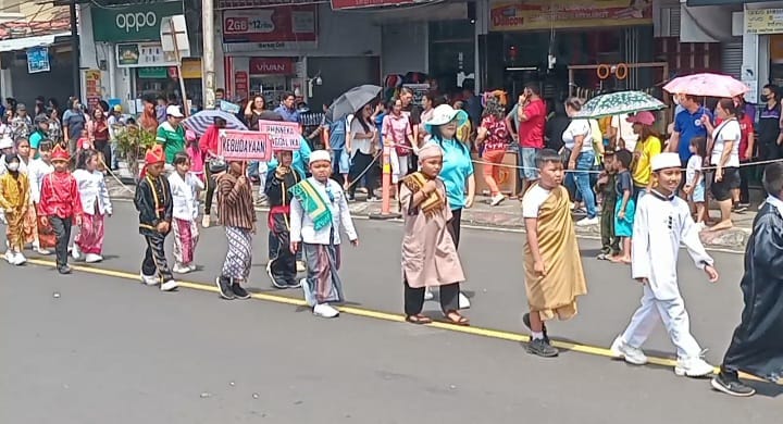 Tomohon,Ekuatornews.com- Sebanyak 122 peserta Pawai Bocah dari kalangan Taman Bermain PAUD, TK, dan SD Se-Kota Tomohon memeriahkan Dalam Rangka Hari Pendidikan Nasional Tahun 2023. Rabu 3/5/2023.