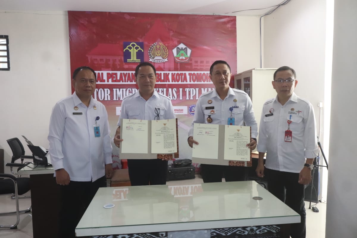 Penandatanganan dilakukan Walikota Tomohon Caroll J A Senduk SH dan Kepala Kantor Imigrasi Kelas I TPI Manado Made Nur Hepi Juniartha SH MAP.