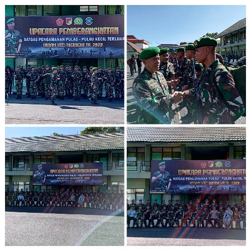 Manado, EkuatorNews.com – Danrem 131/Santiago, Brigjen TNI Wakhyono S.Sos MIP, memimpin upacara Pemberangkatan Satgas Pengamanan Pulau-Pulau Kecil Terluar Kodam XIII/Merdeka Tahun 2023.