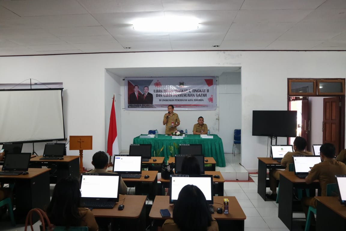 Tomohon,Ekuatornews.com- Walikota Tomohon melalui Asisten Pemerintahan dan Kesejahteraan rakyat Sekretaris Daerah Kota Tomohon Drs. O. D. S Mandagi, MAP hadiri Ujian Dinas Tingkat I, II dan Ujian Penyesuaian Ijazah di lingkungan Pemerintah Kota Tomohon. Bertempat di Ruang CAT BKPSDM Kota Tomohon, Senin (12/6/2023).