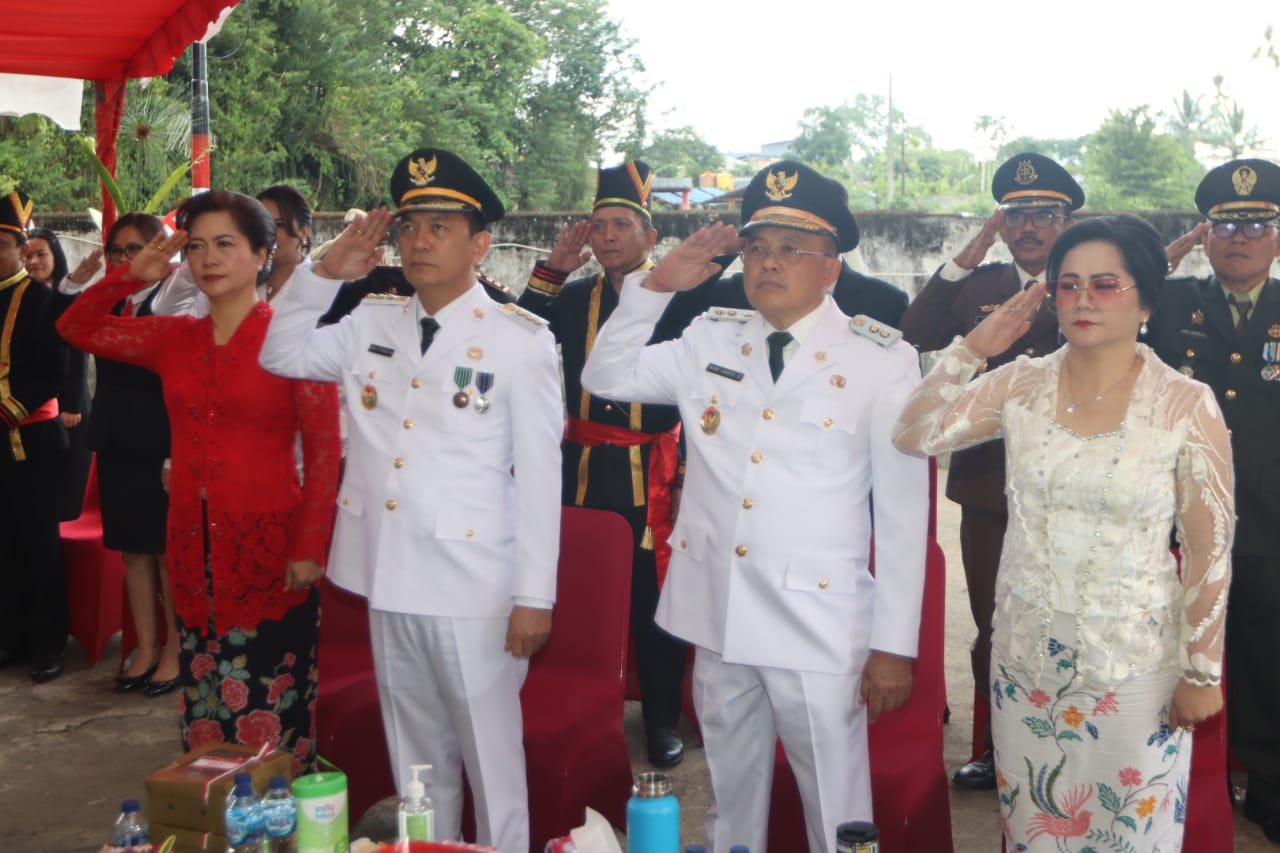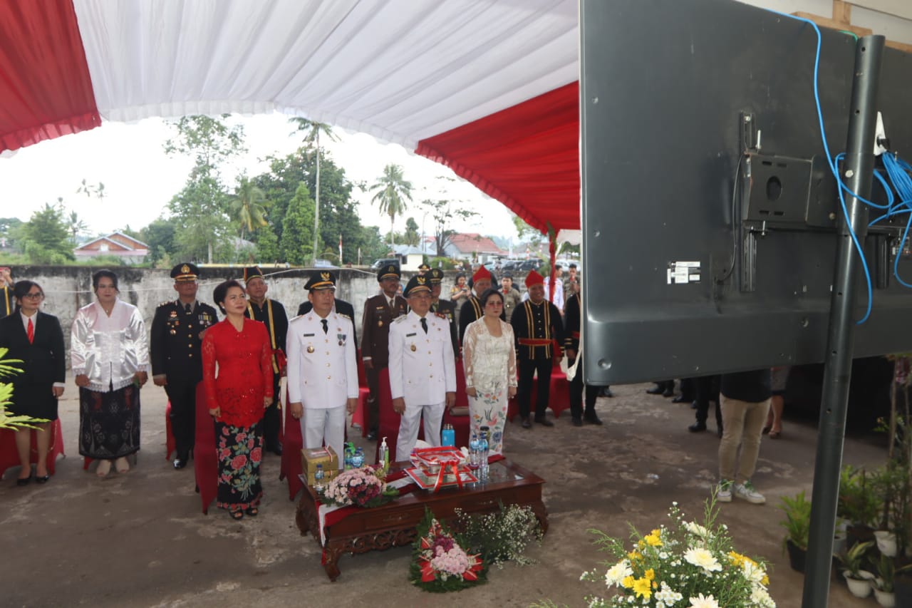 Tomohon,Ekuatornews.com- Walikota Tomohon Caroll J A Senduk SH dan Wakil Walikota Wenny Lumentut SE bersama Forkopimda Kota Tomohon mengikuti prosesi upacara peringatan detik-detik Proklamasi Kemerdekaan Republik Indonesia ke-78 secara virtual yang dilaksanakan di kantor Dispora Kota Tomohon, Kamis (17/8/2023).
