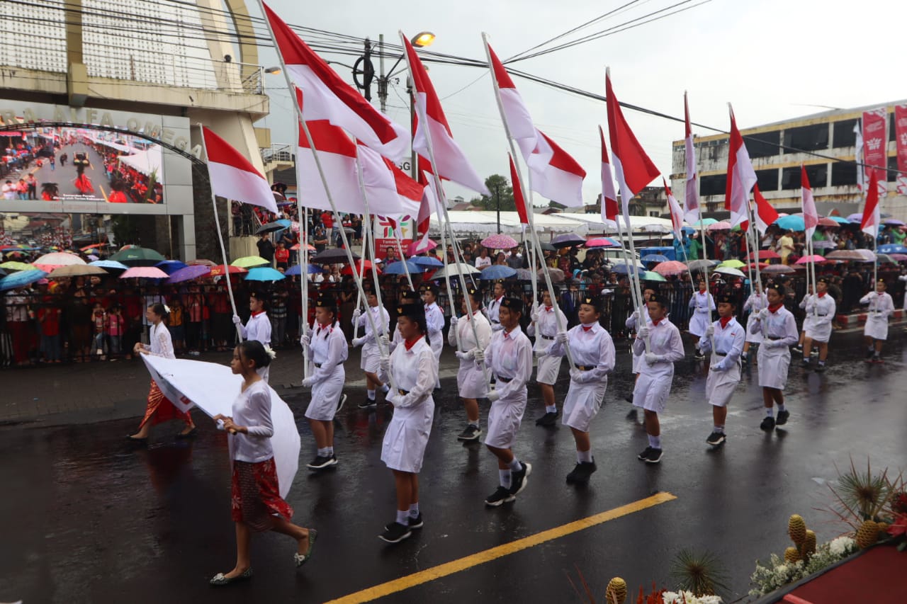 Peserta Pawai yaitu tingkat SD, SMP dan SMA/SMK Se- Kota Tomohon. Kamis 17/8/2023.