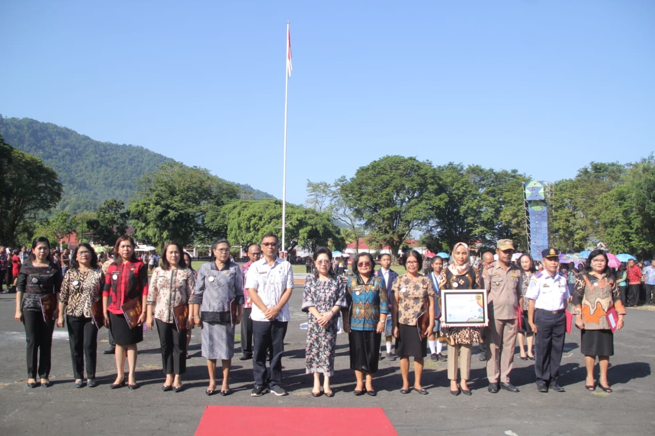 Dikesempatan itu juga Pj Bupati menyampaikan selamat kepada para penerima penghargaan Satya Lencana,BKN Awar peringkat 3 yang diserahkan kepada pemerintah kabupaten kepulauan sangihe atas penerapan pemanfaatan data sistem informasi dan CAT serta bantuan operasional perpustakaan kelurahan berupa buku 300 eksemplar dan 1 unit televisi 43 inch.