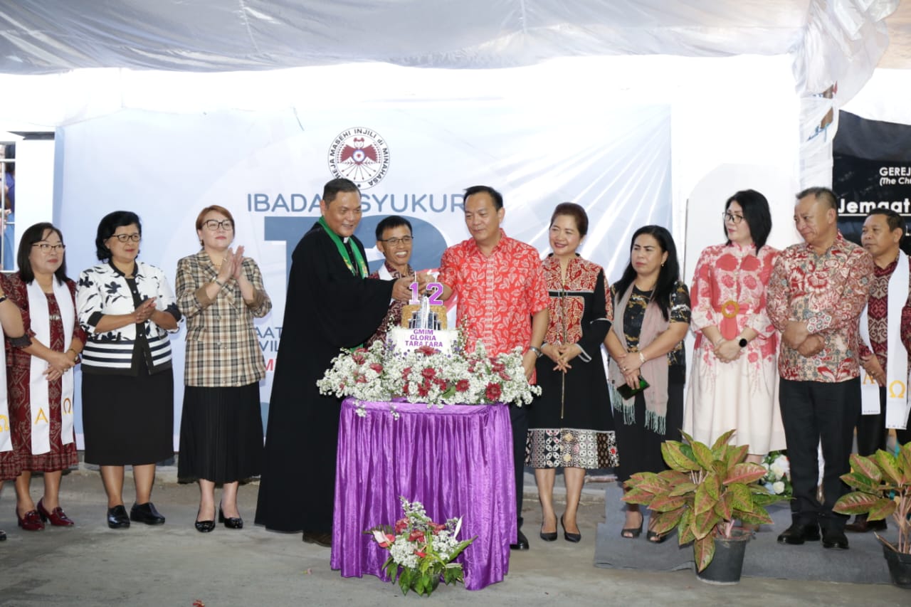 Tomohon,Ekuatornews.com- Ibadah syukur Hari Ulang Tahun ke-12 Jemaat GMIM Gloria Taratara Wilayah Tomohon dua, dilaksanakan di kompleks depan gedung gereja, minggu (15/10/2023). Khadim dalam ibadah tersebut, Pdt Dr Hendry Runtuwene STh MSi.
