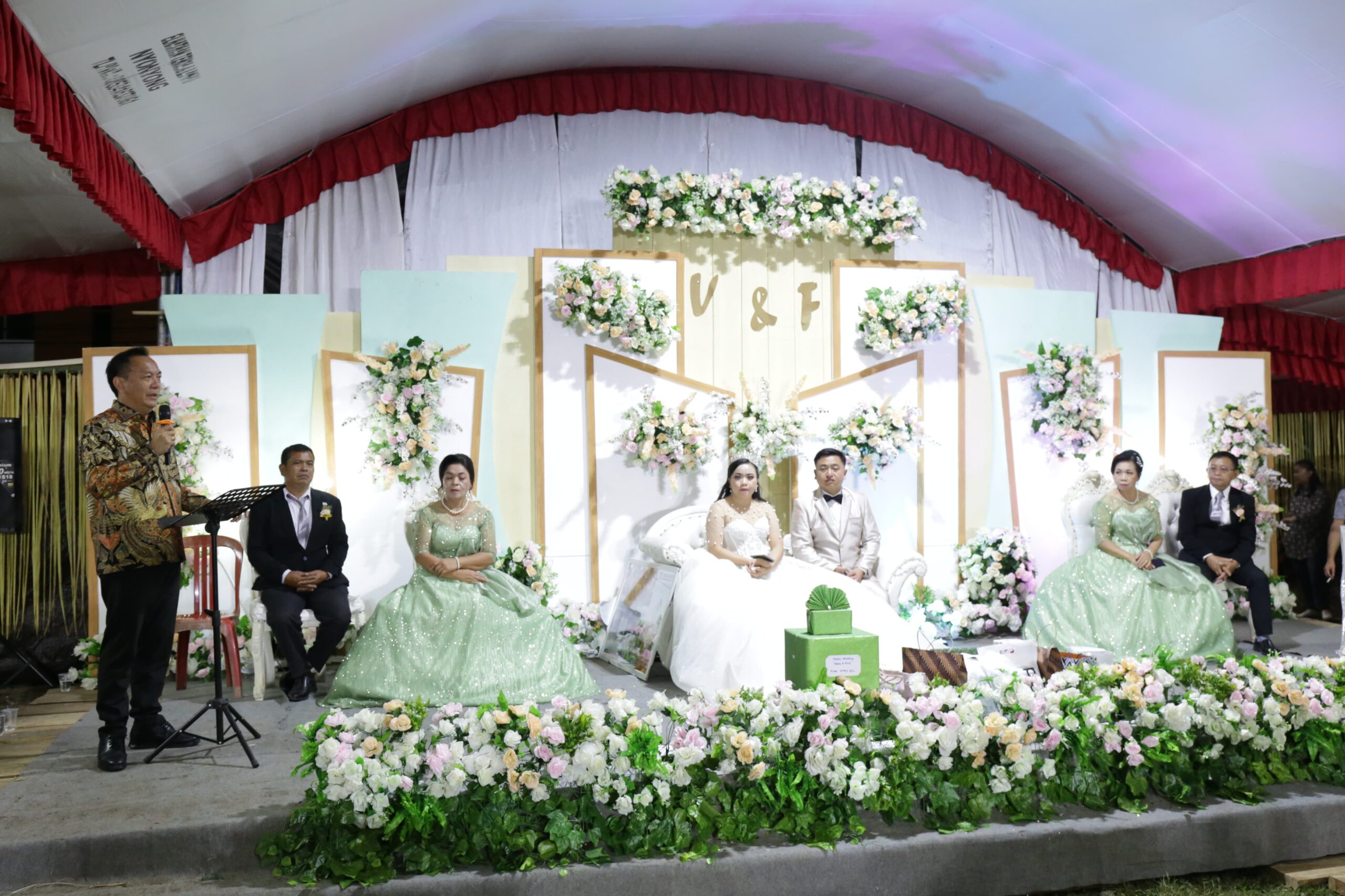 Selaku pemerintah juga kami turut bersukacita, dan buat kedua mempelai, ini adalah hal yang baru sebagai suami istri yang pasti setiap perjalan rumah tangga akan banyak tantangan, tetapi harus selalu andalkan Tuhan setiap melangkah didalam mengarungi bahtera keluarga yang baru. Saling mengalah dan saling mengerti, karena ini adalah pesan dari Tuhan. Banyak selamat kepada keluarga besar kedua belah pihak.