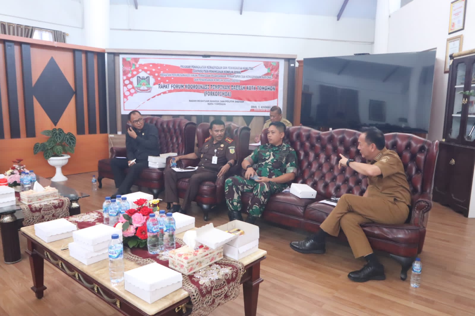 Tomohon,Ekuatornews.com- Rapat (Forkopimda) Forum Koordinasi Pimpinan Daerah Kota Tomohon, dilaksanakan di ruang rapat Walikota Tomohon, senin 13 november 2023.