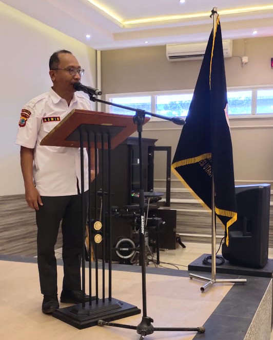 Aswin Kasim SH saat membawakan sambutan sebagai Ketua Pokdar Kamtibmas Bhayangkara Sulut.