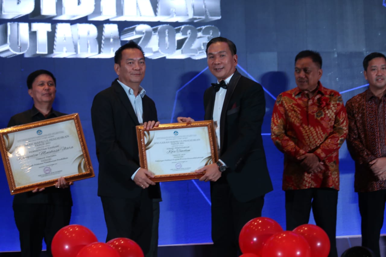 Anugerah Mapalus Pendidikan Sulut 2023 jatuh kepada Kabupaten Bolsel Kategori Madya dan Kota Bitung Kategori Muda. (Alfa Jobel).