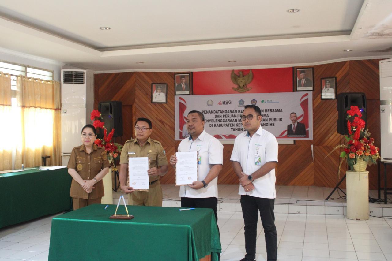 Kepala Dinas Perijinan dan Penanaman Modal Daerah Kabupaten Kepulauan Sangihe, Drs Doktarius Pangandaheng mengatakan bahwa kerjasama ini bertujuan untuk menggabungkan beberapa layanan publik termasuk Layanan Kantor Imigrasi, Pajak Pratama, BPJS Ketenagakerjaan dan BSG di Mal Pelayanan Publik.
