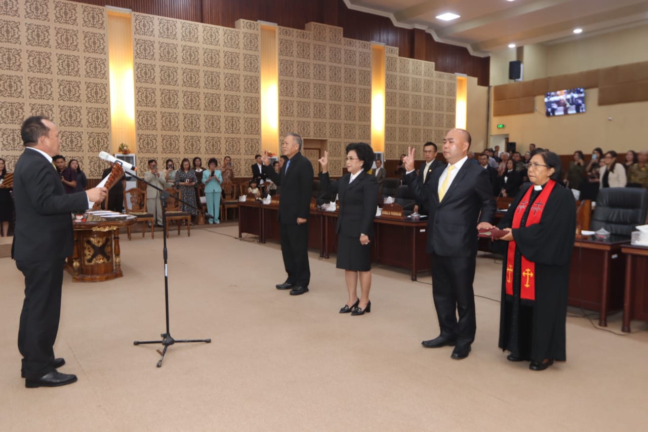 Tomohin,Ekuatornews.com- Rapat Paripurna DPRD Kota Tomohon dalam rangka Peresmian, Pelantikan dan Pengucapan Sumpah / Janji Pengganti antar Waktu Anggota DPRD sisa masa jabatan 2019 – 2024. Bertempat di Kantor DPRD Kota Tomohon.