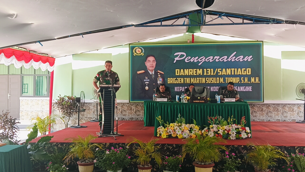 Dalam kesempatan itu, sebagai Danrem 131/Santiago yang baru, Brigjen TNI Martin Susilo Martopo Turnip S.H. M.H. memperkenalkan diri kepada prajurit Kodim 1301/Sangihe. Selain itu Danrem mengatakan, “Mari kita jalin kekeluargaan, jauhkan perbedaan, jaga toleransi serta jangan saling membedakan satu dengan yang lain,” Imbuhnya.