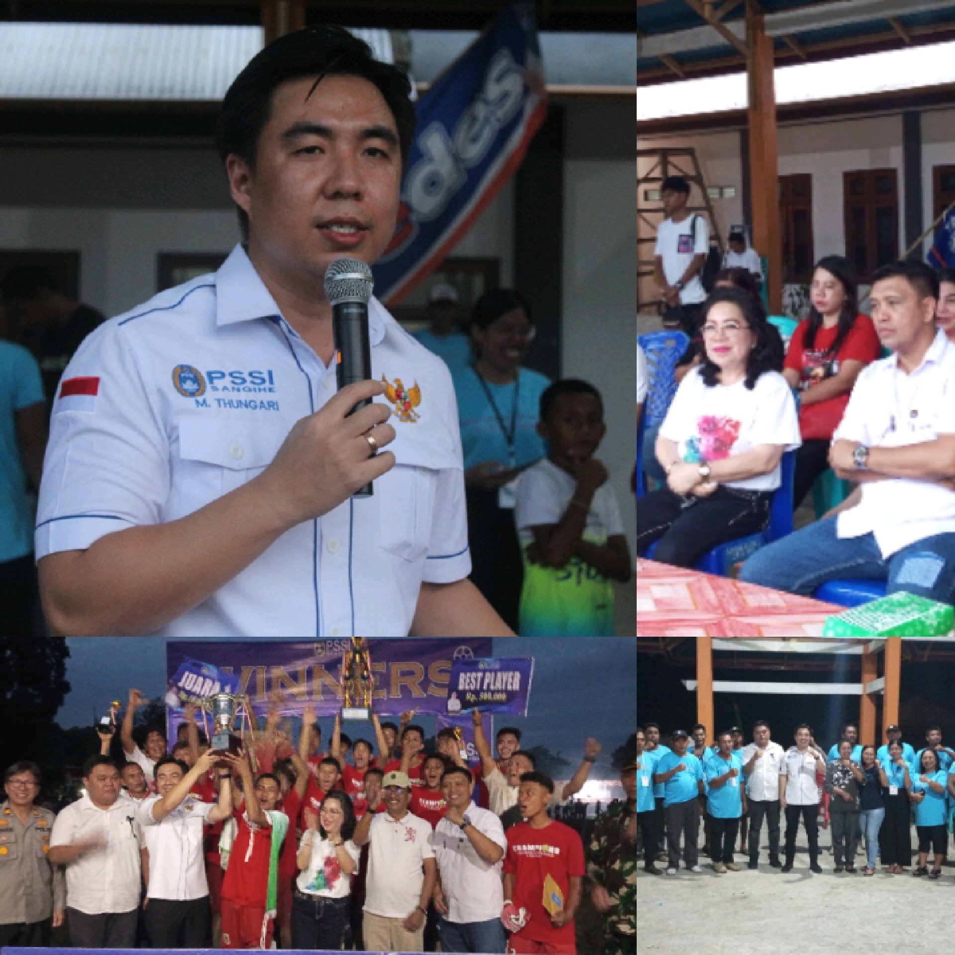 “Semua kegiatan ini tidak terlepas dari dukungan semua pihak. Dan apresiasi yang sebesar – besarnya kepada panitia dari Jemaat Baitel Tamako yang sudah berjuang keras dengan kondisi lapangan seperti ini terus memperbaiki demi keberlangsungan turnamen ini. Sekali lagi saya atas nama pribadi dan seluruh pengurus ASKAB semua pecinta bola yang ada di kabupaten kepulauan Sangihe mengucapkan apresiasi dan banyak terimakasih.