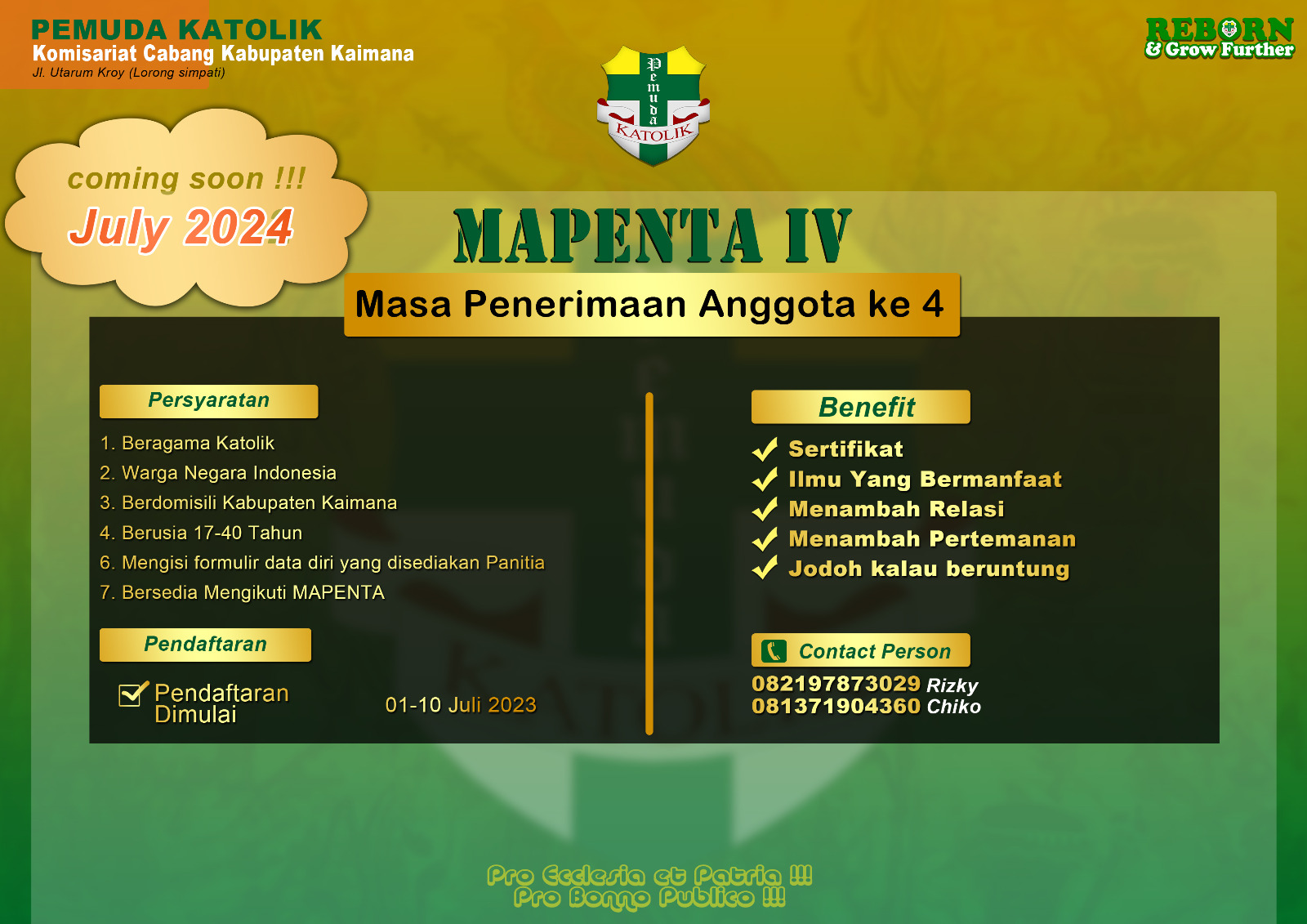 KAIMANA- Pemuda Katolik Komisariat Cabang (Komcab) Kaimana siap melaksanakan Masa Penerimaan Anggota (Mapenta) ke IV.