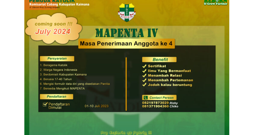 “Pendaftaran anggota baru Pemuda Katolik Kaimana telah dibuka mulai hari ini hingga tanggal 9 Juli 2024 mendatang,” ujar Rizky sapaan akrab Rizky Arlando Amerbay, Senin (1/7/2024).