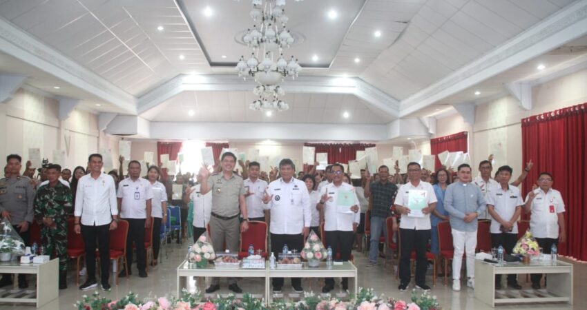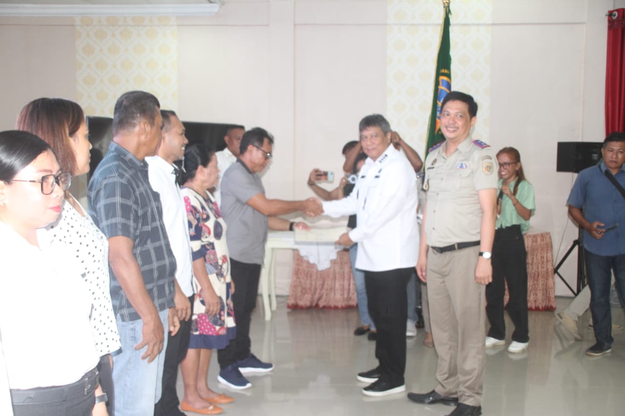 Sangihe – Ekuatornews.com.- Penjabat Bupati Sangihe, Albert Huppy Wounde,SH, MH serahkan  Sertifikat Tanah Elektronik kepada warga masyarakat, UKM juga kepada Instansi Pemerintah bertempat di ruang serbaguna Rumah Jabatan Bupati Kepulauan Sangihe. Rabu (3/7/2024).
