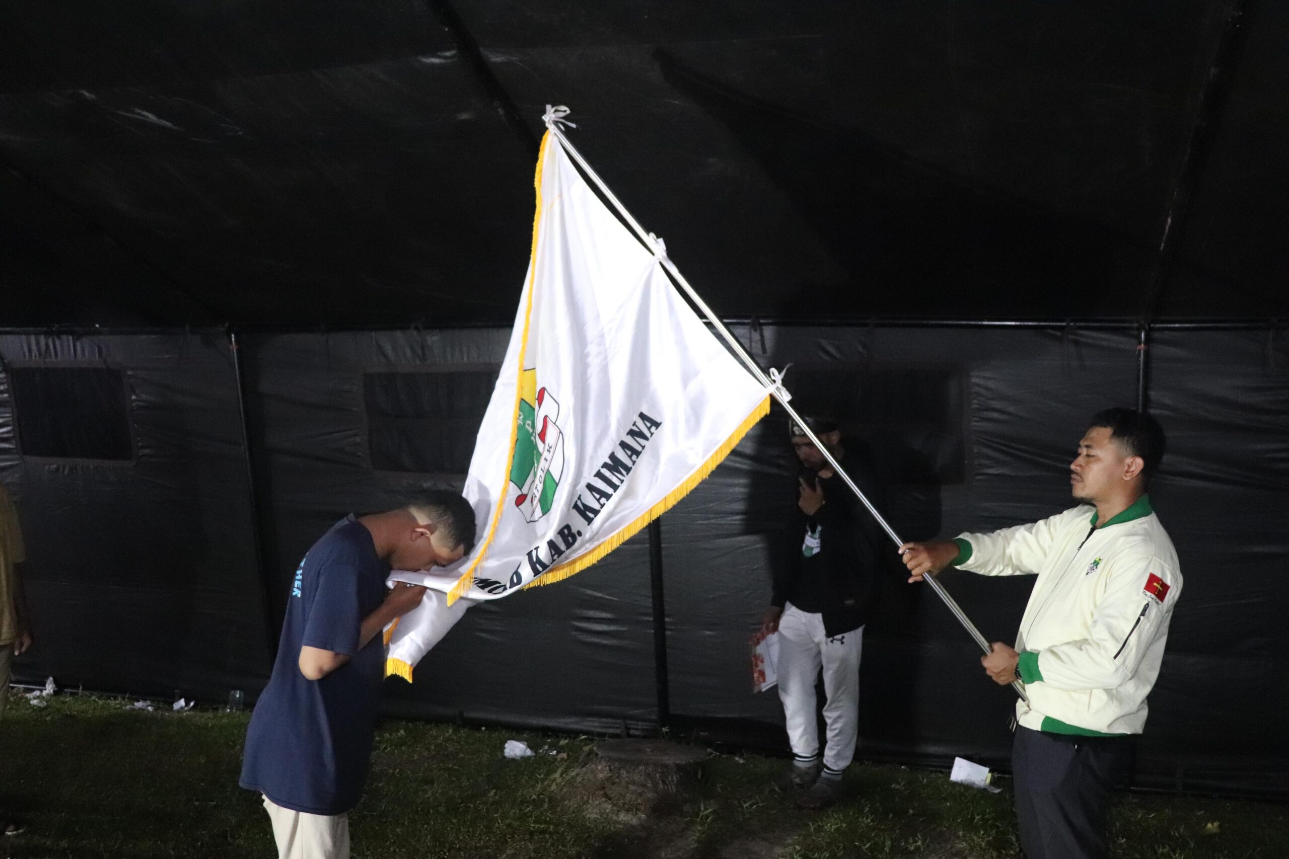Lebih lanjut, Rizky menjelaskan pelantikan diawali dengan pembacaan Surat Keputusan nomor: 001/SK/Komcab-Kaimana/VII/2024 dan dilanjutkan dengan momen sakral penciuman bendera Pataka oleh para kader baru.