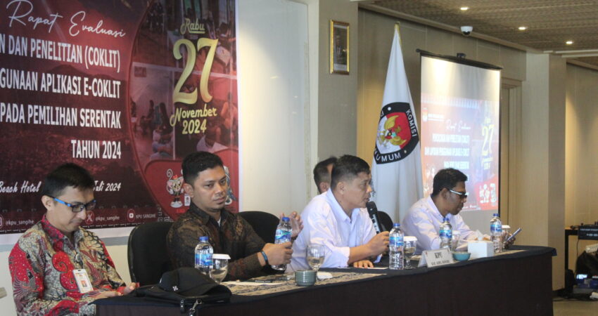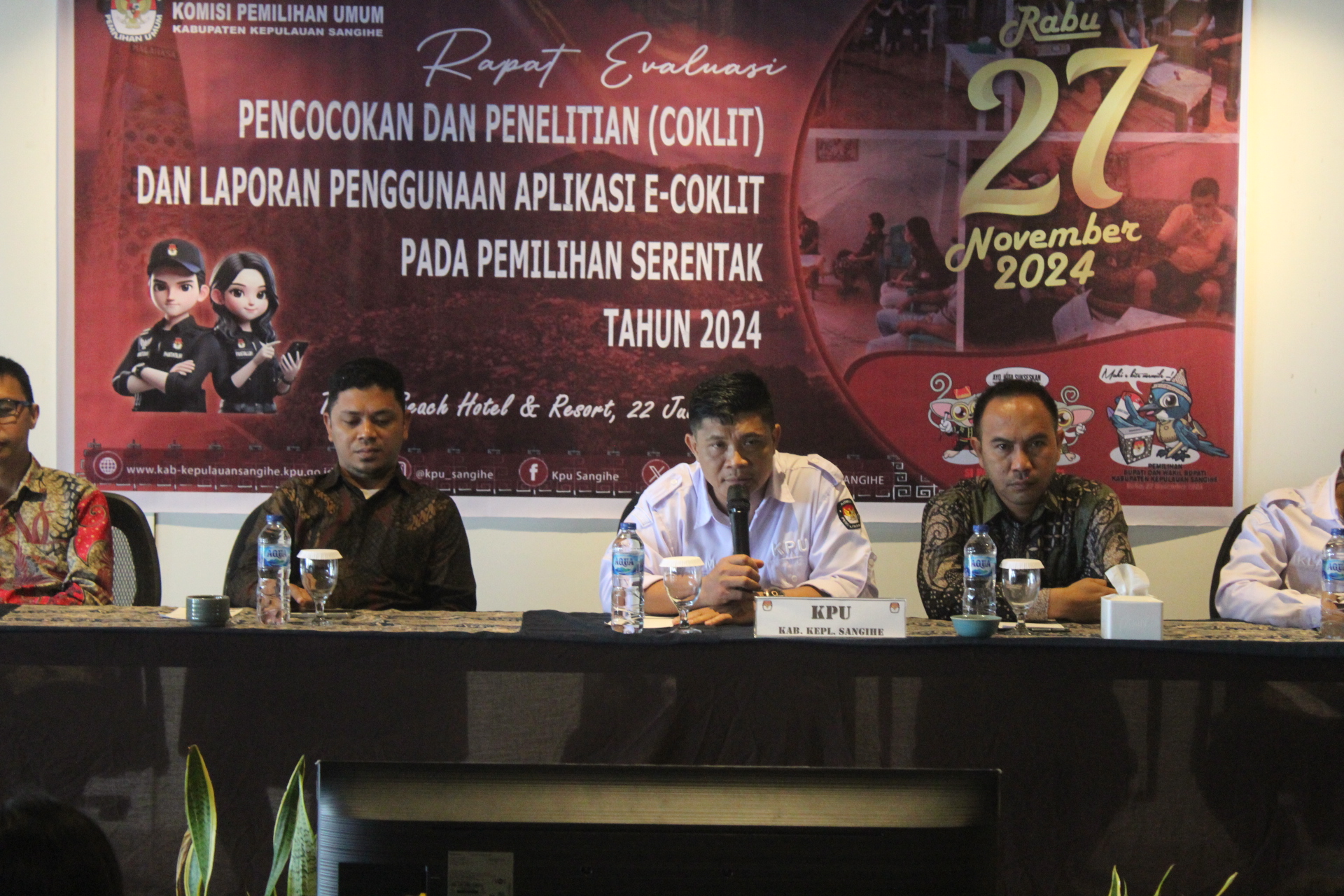 Sehubungan dengan tahapan Pemutakhiran dan Penyusunan Daftar Pemilih sebagaimana ketentuan pada Peraturan KPU Nomor 7 Tahun 2024 tentang Penyusunan Daftar Pemilih dalam penyelenggaraan Pemilihan Gubernur dan Wakil Gubernur, Bupati dan Wakil Bupati serta Walikota dan Wakil Walikota, dan berdasarkan Keputusan KPU Nomor 799 Tahun 2024 tentang Petunjuk Teknis penyusunan Daftar Pemilih dalam penyelenggaraan Pemilihan Gubernur dan Wakil Gubernur, Bupati dan Wakil Bupati serta Walikota dan Wakil Walikota, maka dalam rangka mendukung pelaksanaan kegiatan tersebut, KPU Kabupaten Kepulauan Sangihe menggelar Rapat Evaluasi Pendataan Pencocokan dan Penelitian (Coklit) pada Pemilihan Serentak Tahun 2024.