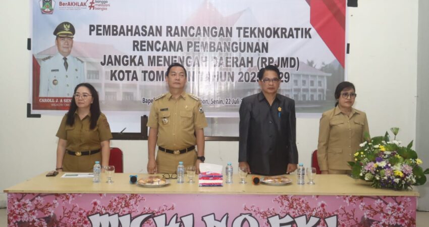 Penyusunan rancangan teknokratik merupakan salah satu tahapan dalam penyusunan RPJMD Kota Tomohon Tahun 2025-2029 yang merupakan penjabaran periode pertama rencana pembangunan jangka panjang daerah (RPJPD) Kota Tomohon tahun 2025-2045. Yang telah disepakati bersama dengan DPRD tanggal 5 juli 2024.