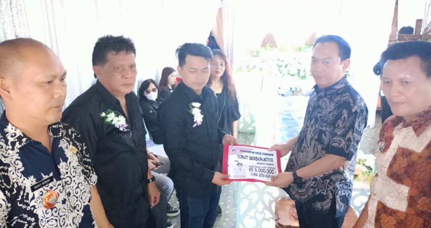 Selanjutnya Pemerintah dalam hal ini Walikota Tomohon menyerahkan santunan duka dari pemerintah Kota Tomohon serta Dokumen Kependudukan kepada Keluarga.