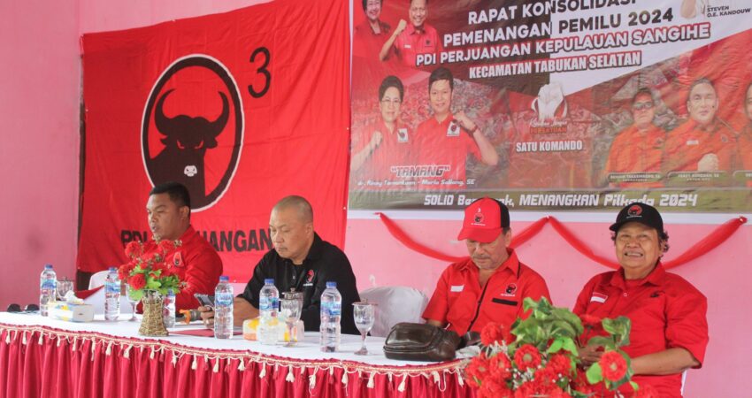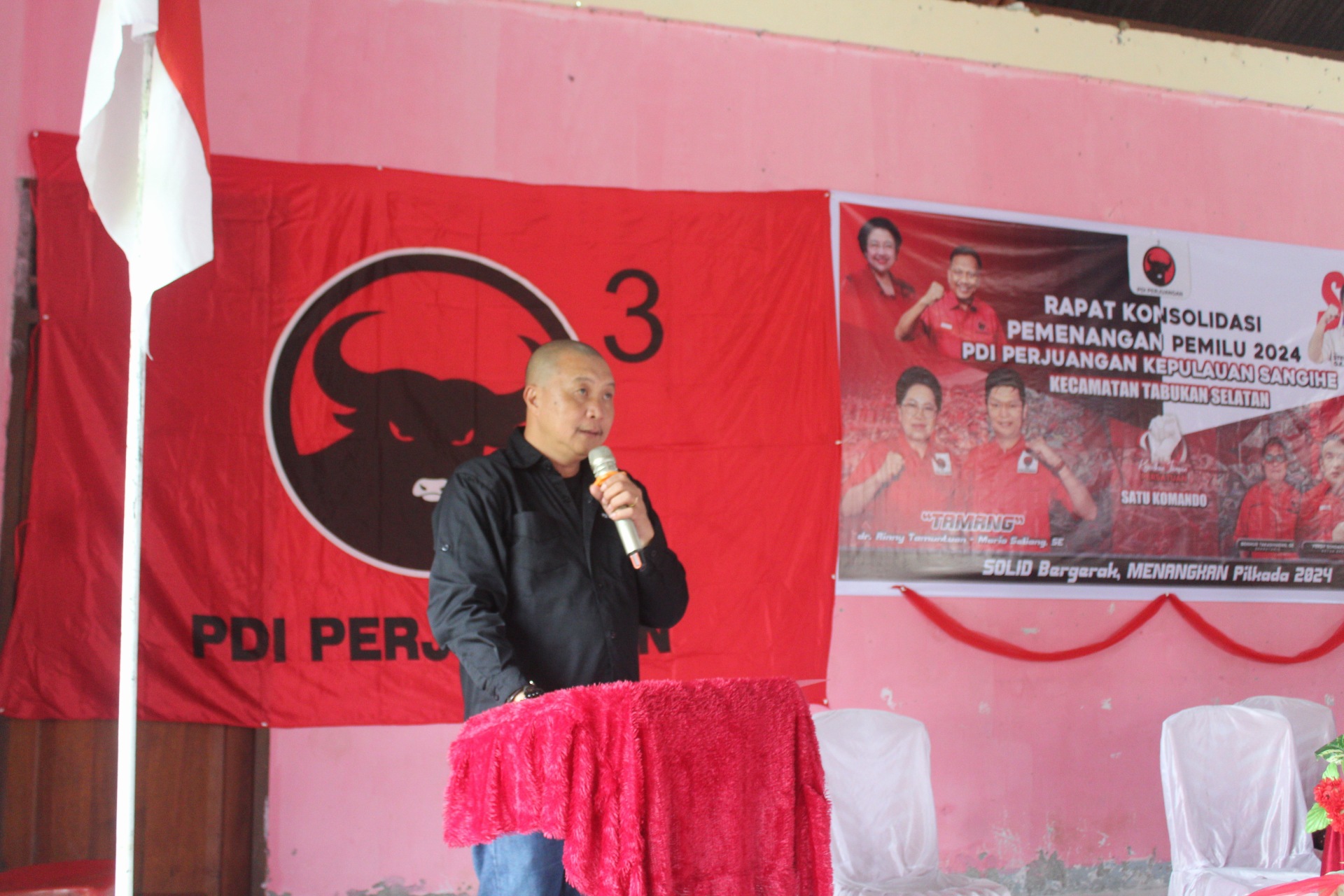 Sangihe – Ekuatornews.com. – Rapat Konsolidasi Pemenangan Pilkada 2024 PDI Perjuangan kepulauan Sangihe di kecamatan Tabukan Selatan. Bendahara DPC PDI Perjuangan Tekankan Pentingnya Sinergi dan Soliditas Seluruh Kader Partai.