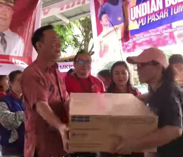 TomohonEkuatornews.com— Walikota Tomohon, Caroll J.A. Senduk, SH, menghadiri acara pengundian retribusi hasil kerja sama Pemerintah Kota Tomohon melalui PD Pasar Tomohon dengan BNI, BRI, dan Mitra Kasih Perkasa (MKP). Kegiatan ini merupakan salah satu upaya pemerintah dalam memperkuat sinergi dengan berbagai pihak untuk mendukung peningkatan layanan dan kesejahteraan para pedagang di Pasar Beriman Tomohon.