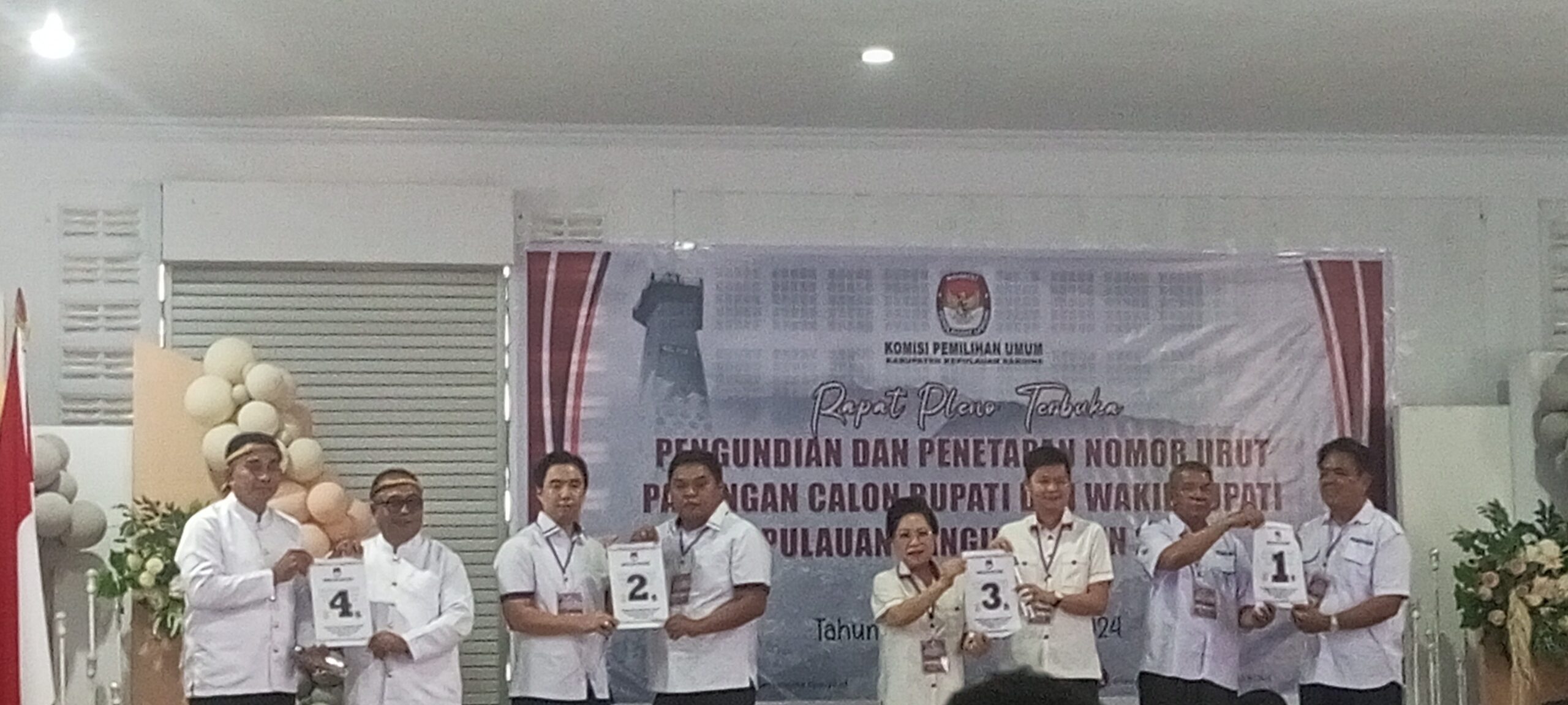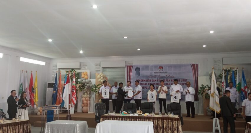 Acara ini merupakan bagian penting dari tahapan pemilihan umum, di mana setiap pasangan calon diundi untuk mendapatkan nomor urut yang akan digunakan sebagai identitas resmi selama masa kampanye. Proses pengundian ini dilakukan secara transparan dan dihadiri oleh para calon, tim sukses, serta perwakilan dari Komisi Pemilihan Umum (KPU) Kabupaten Kepulauan Sangihe, memastikan bahwa seluruh prosedur berjalan sesuai dengan aturan yang berlaku.
