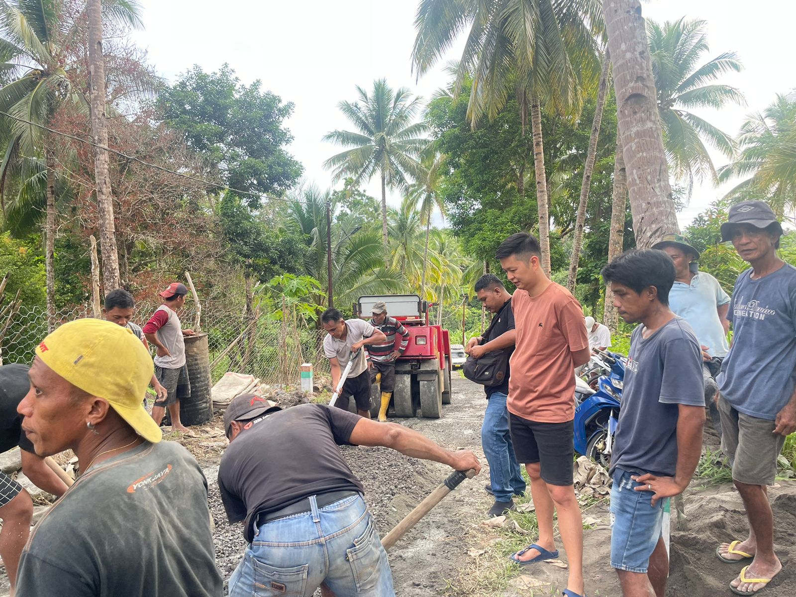Maksud kunjungan tersebut untuk melihat langsung kegiatan pengecoran jalan yang dilakukan secara gotong royong oleh warga. Menarik, seluruh material untuk pengecoran merupakan hasil patungan dari masyarakat setempat. Selain itu, warga juga berkontribusi dengan membawa makanan untuk disantap bersama.