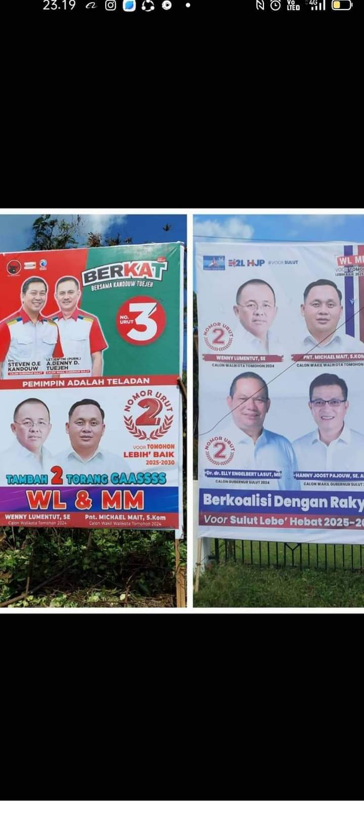 Tomohon,Ekuatornews.com- Badan Pengawas Pemilu (Bawaslu) Kota Tomohon melakukan penertiban serentak terhadap puluhan baliho bermasalah pada Sabtu (19/10), yang tersebar di berbagai kecamatan di Kota Tomohon. Fokus penertiban ini adalah pada alat peraga kampanye (APK) dan baliho milik calon Wali Kota dan Wakil Wali Kota Tomohon yang dianggap melanggar aturan karena bertandem bersama pasangan calon Gubernur dan Wakil Gubernur yang diusung partai politik.
