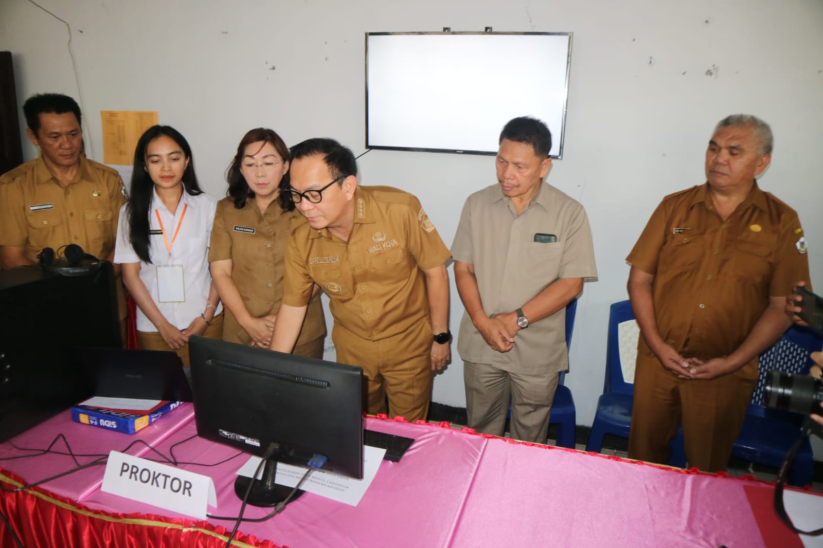 Turut Hadir, Sekretaris Daerah Kota Tomohon Bpk. Edwin Roring, SE, ME., Asisten Pemerintahan dan Kesejahteraan Rakyat Sekretariat Daerah Kota Tomohon Bpk. O. D. S. Mandagi, MAP., Kepala Cabang Dinas Pendidikan Tomohon-Minahasa DInas Pendidikan Daerah Prov.Sulut Drs. Freddy Kumeang, S.Pd., Kepala Dinas Sosial Daerah Kota Tomohon Bpk. Thomly Lasut, SH., Kepala DInas Pendidikan dan Kebudayaan Daerah Kota Tomohon Ibu. Dr. Juliana Karwur, M.Kes, M.Si., Kepala BAgian Hukum Sekretariat Daerah Kota Tomohon Bpk. Berny Mambu, SH, MH., Kepala Bagian Kesejahteraan Rakyat Sekretariat Daerah Kota Tomohon Bpk. Fransiskus Lantang, S.STP., Bersama Tim Pengelolah Beasiswa Kota Tomohon tahun 2024.