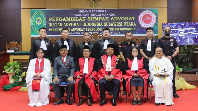 “Setelah itu Ketua Pengadilan Tinggi Manado sebagai pimpinan sidang terbuka dan didampingi 2 hakim tinggi anggota menyerahkan berita sumpah yang merupakan ijin beracara bagi seluruh advokat berlaku dan digunakan pada pengadilan di seluruh Republik Indonesia,” jelasnya.