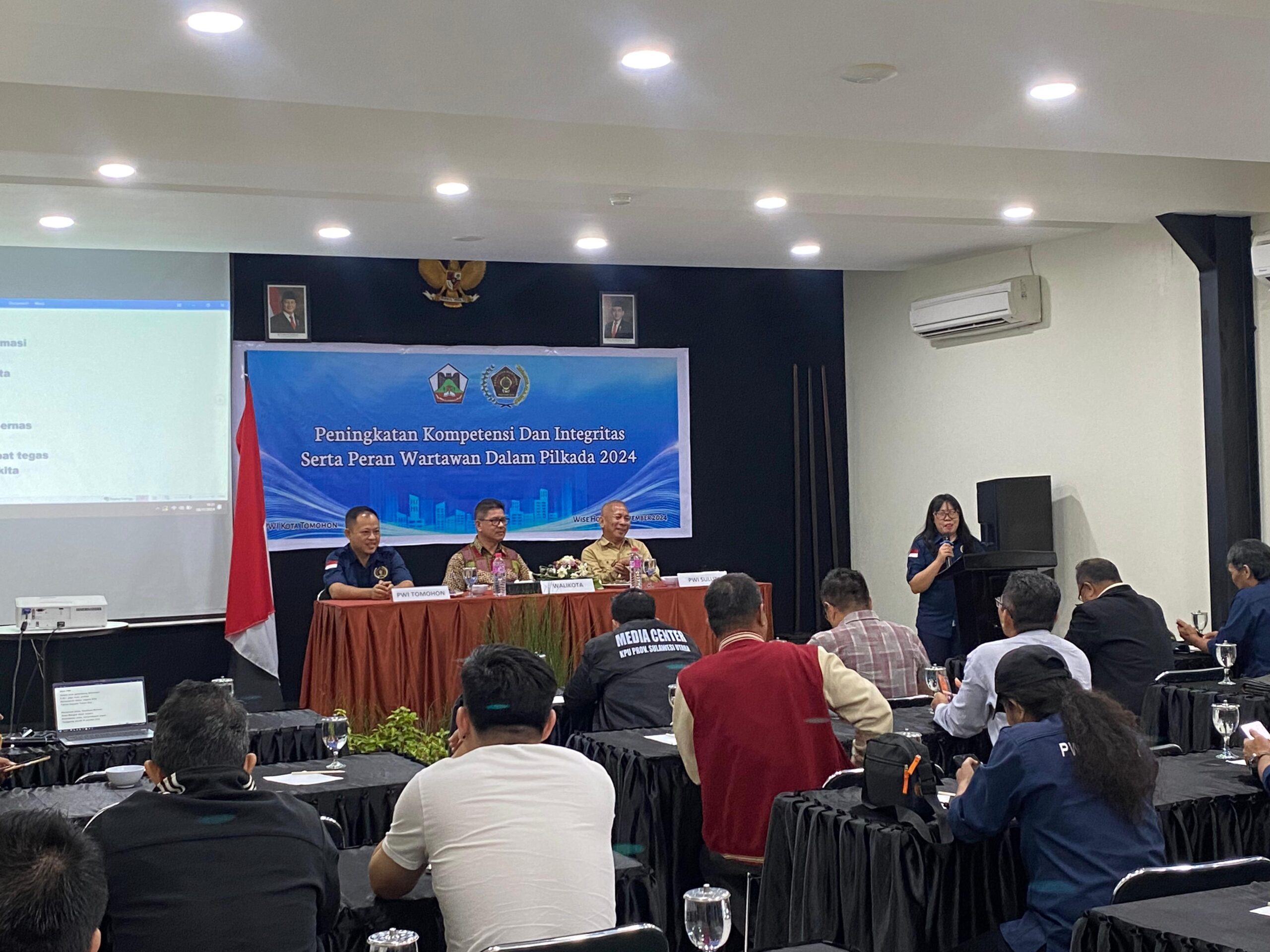 Tomohon,Ekuatornews.com- Penjabat Sementara Walikota Tomohon Ir. Fereydy Kaligis, MAP menghadiri Kegiatan Peningkaran Kompetensi dan Integritas Serta Peran Wartawan dalam Pilkada 2024.Tempat di Hotel Wise Tomohon. Jumat,(8/11/2024). Narasumber : Selaku Wakil Ketua PWI Provinsi Sulawesi Utara Bpk. Donald Kuhon.