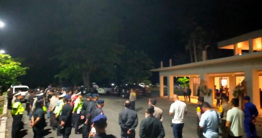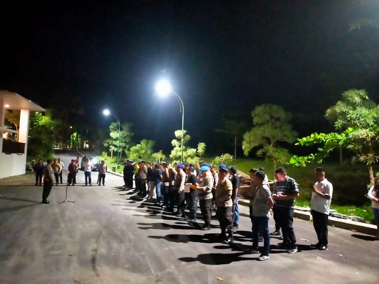 Sangihe – Ekuatornews.com.- Kurang lebih 200 Personil gabungan Polres Sangihe bersama TNI melaksanakan apel gabungan dalam rangka pengamanan debat kedua calon bupati dan wakil bupati Kepulauan Sangihe tahun 2024 yang bertempat di Hotel Tahuna Beach pada Minggu (17/11/2024).