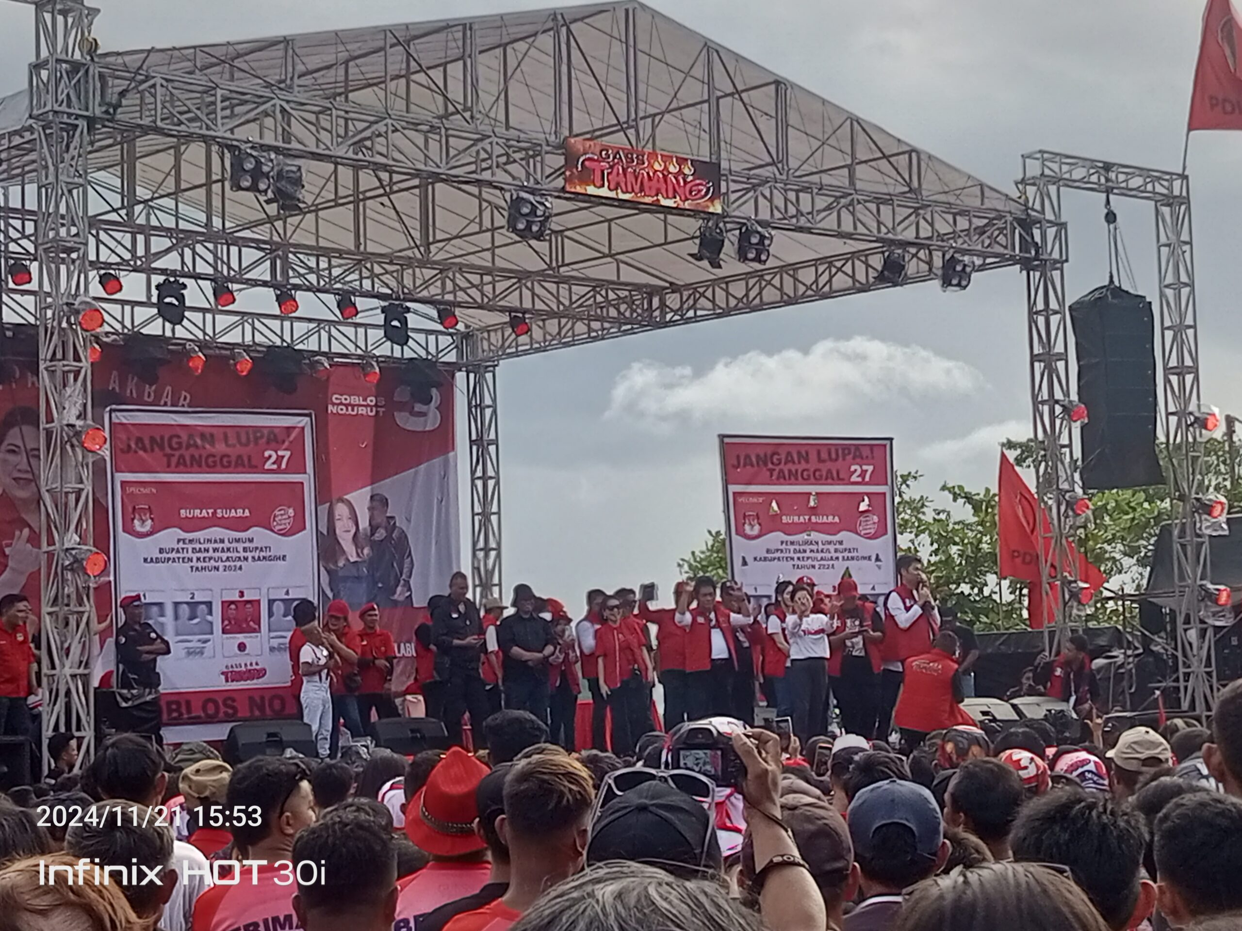 Kehadiran massa yang begitu besar menjadi bukti nyata dari kedekatan dan pengaruh yang dimiliki Rinny Tamuntuan dan Mario Seliang di kalangan warga Sangihe.