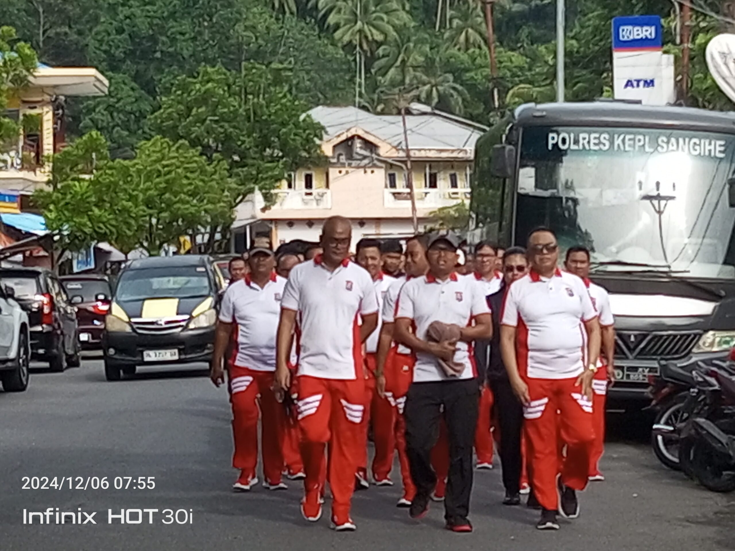 Sangihe – ekuatornews com.- Keluarga besar Polres Sangihe pada hari Jum’at (6/12/2024) pukul 7:00, wita melaksanakan kegiatan olahraga berupa jalan sehat yang dipimpin langsung oleh Kapolres Sangihe AKBP. Abdul Kholik, S.H.,S.I.K., M.A.P, serta diikuti oleh seluruh anggota dan keluarga besar Polres dan BKO Polda Sulut.