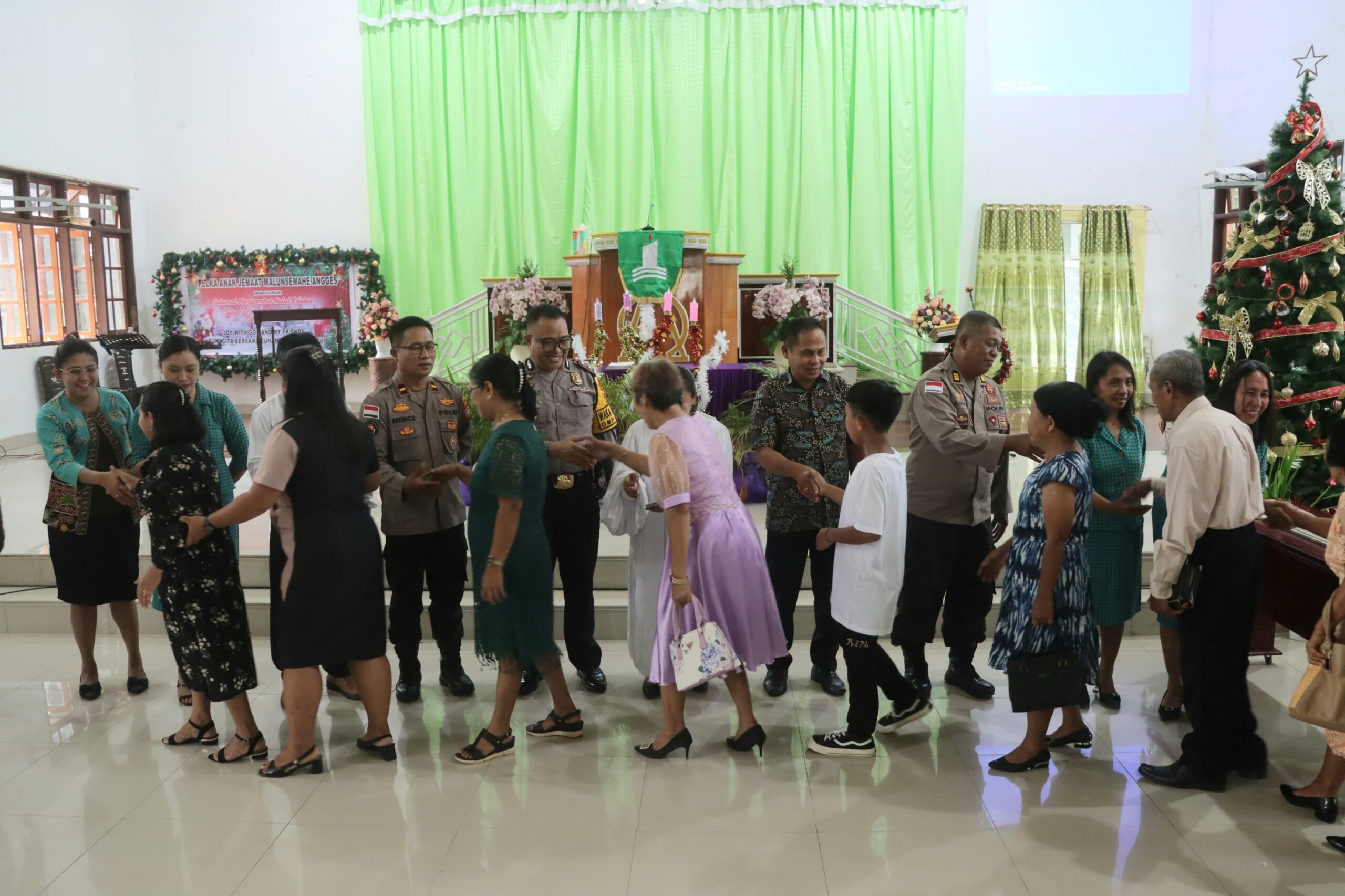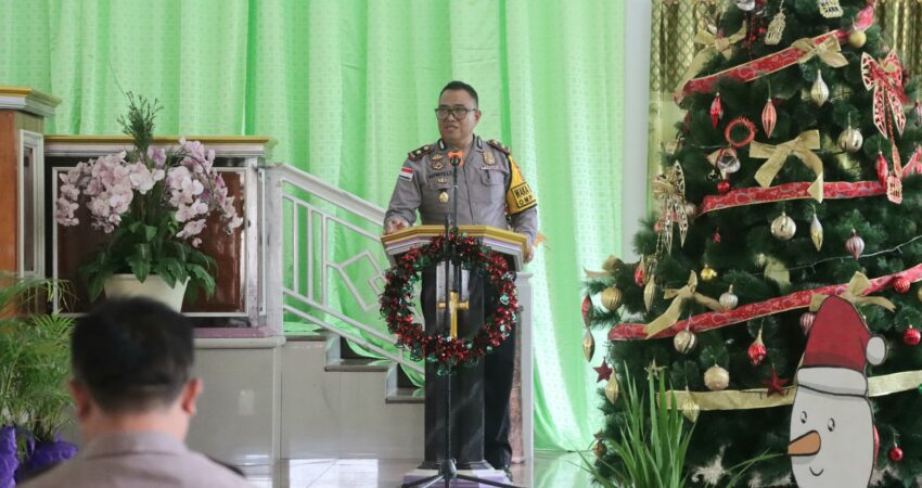 Sangihe – Ekuatornews.com.- Program “MINGGU KASIH” Polres Kepulauan Sangihe, dalam rangka Silaturahmi sekaligus memberikan himbauan oleh  Wakapolres Kepulauan Sangihe KOMPOL. Alfrets. L. Tatuwo, S.Sos., yang bertempat di GMIST Jemaat MALUNSEMAHE Angges, Kecamatan Tahuna barat Kabupaten Kepulauan Sangihe. Pada Minggu pagi (8/12/2024).