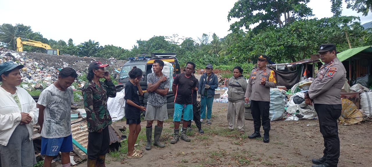 Sangihe – Ekuatornews.com.- Personel Sat Binmas Polres Kepulauan Sangihe yang dipimpin oleh Kasat Binmas AKP Nuryani Kampungbae bersama KBO Sat Binmas IPDA H. Kaware, SH, serta Ps Kanit Binpolmas dan Ps Kanit Bintibsos melaksanakan kegiatan sambang dan memberikan himbauan kepada masyarakat di Tempat Pembuangan Akhir (TPA) Kelurahan Pananekeng, Kecamatan Tahuna Barat, Kabupaten Kepulauan Sangihe pada Kamis (13/2/2025). Kegiatan ini dilakukan sebagai bentuk kepedulian terhadap masyarakat terkait kondisi cuaca ekstrem, khususnya angin kencang yang berpotensi menyebabkan bencana di daerah rawan seperti lereng gunung.