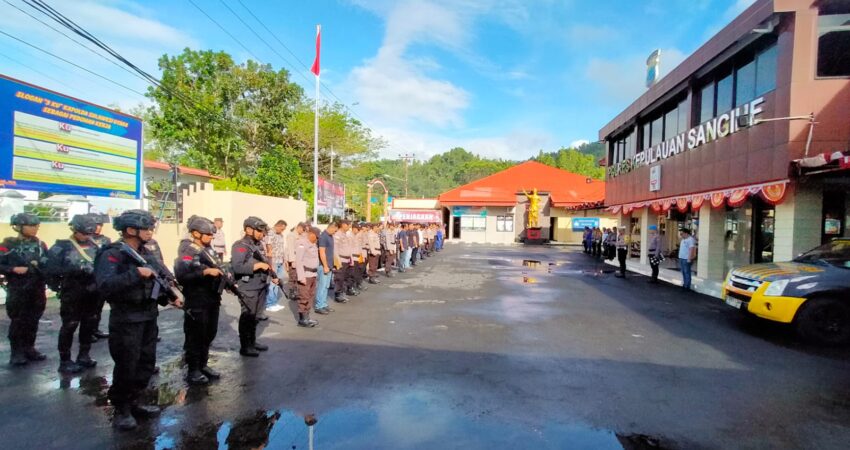 Sangihe – Ekuatornews.com.- Kapolres Kepulauan Sangihe, AKBP Abdul Kholik, S.H., S.I.K., M.A.P., memimpin Apel Kesiapsiagaan pada Kamis (20/2/2025) sebagai bagian dari persiapan pengamanan pelantikan Bupati dan Wakil Bupati Kabupaten Kepulauan Sangihe yang terpilih. Apel ini diikuti oleh Para Kabag,kasat, perwira, Bintara dan BKO Poskotis Brimobda Polda Sulut dan personel kepolisian serta unsur terkait guna memastikan kesiapan dalam menjaga stabilitas keamanan selama proses pelantikan berlangsung. Dalam amanatnya, Kapolres menekankan pentingnya sinergi dan kesiapan seluruh personel dalam menghadapi berbagai potensi gangguan keamanan.