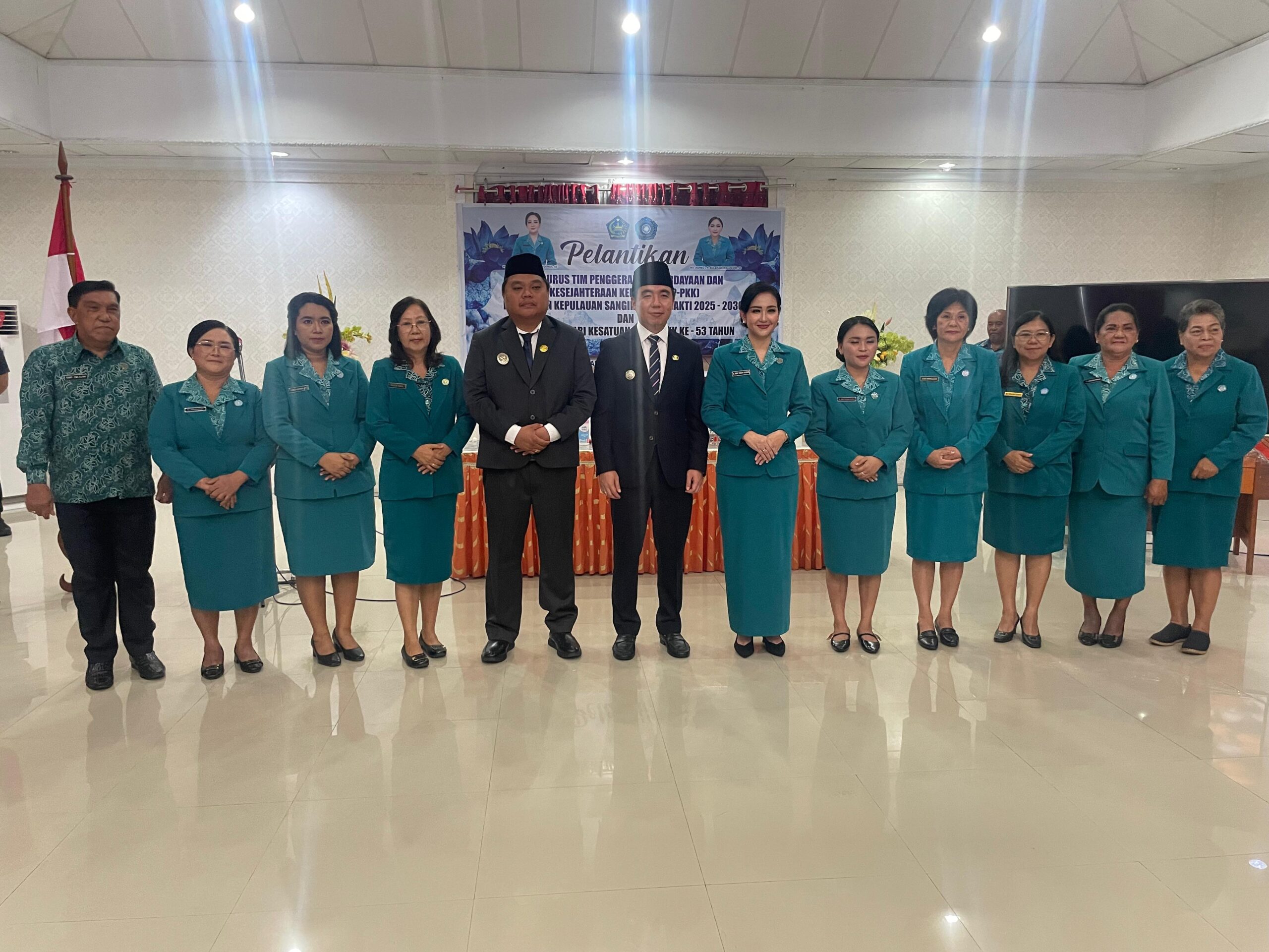 Adapun Pelantikan pengurus TP-PKK kali ini, dirangkaikan dengan Peringatan Hari Kesatuan Gerak PKK ke 53 tahun, dan dihadiri Wakil Bupati Kepulauan Sangihe bersama isteri, Sekertaris Daerah, Asisten I, Kadis Kesehatan Daerah, serta pengurus TP-PKK yang baru