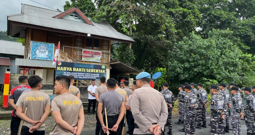 Sangihe – Ekuatornews.- Kolaborasi antara Polres Kepulauan Sangihe, Kodim 1301/Sangihe, dan Lanal Tahuna menunjukkan sinergi nyata dalam menjaga kebersihan lingkungan. Pada Rabu, (23/4/2025). ketiga institusi ini melaksanakan kerja bakti bersama di Pasar Towo’e. Kegiatan ini melibatkan puluhan personel dari masing-masing instansi yang bahu-membahu membersihkan area pasar, saluran air, serta fasilitas umum lainnya.