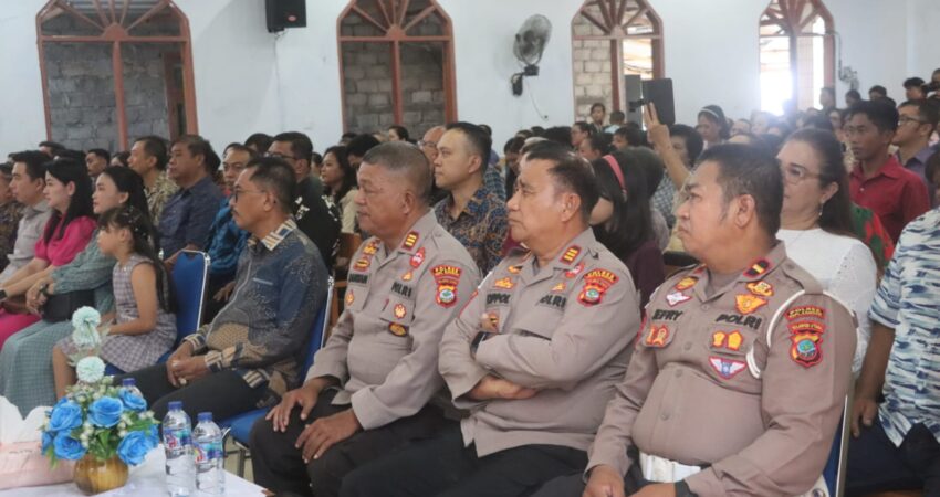 Sangihe – Ekuatornews.com.- PJU Polres Kepulauan Sangihe Menghadiri ibadah syukur HUT ke -64 di Jemaat GMIST Patmos Tahuna pada Minggu (11/5/2025) di kelurahan Soataloara l, kecamatan Tahuna.