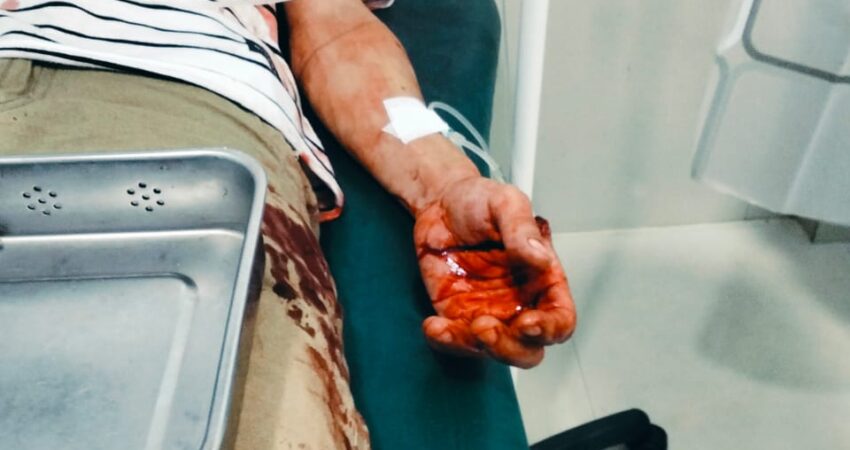 Tanpa banyak bicara, pelaku mengayunkan parang ke arah tubuh korban. Namun, korban berhasil menangkis serangan tersebut dengan tangan kirinya, yang menyebabkan luka cukup serius di bagian telapak tangan.