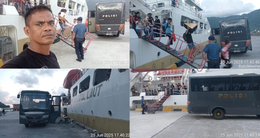 Sangihe – Ekuatorbews.com. — Wujud kepedulian kepada masyarakat kembali ditunjukkan oleh Polres Kepulauan Sangihe. Salah satu personelnya, Aipda Matius Koming, dengan lapang dada menggunakan kendaraan dinas untuk menjemput peserta kegiatan dari Resort Siau Timur, Barat, dan Tagulandang pada Rabu (25/6/2025) yang akan mengikuti Festival SERAST (Seni dan Literasi Alkitab) serta Pekan Olahraga Remaja GMIST Tahun 2025.