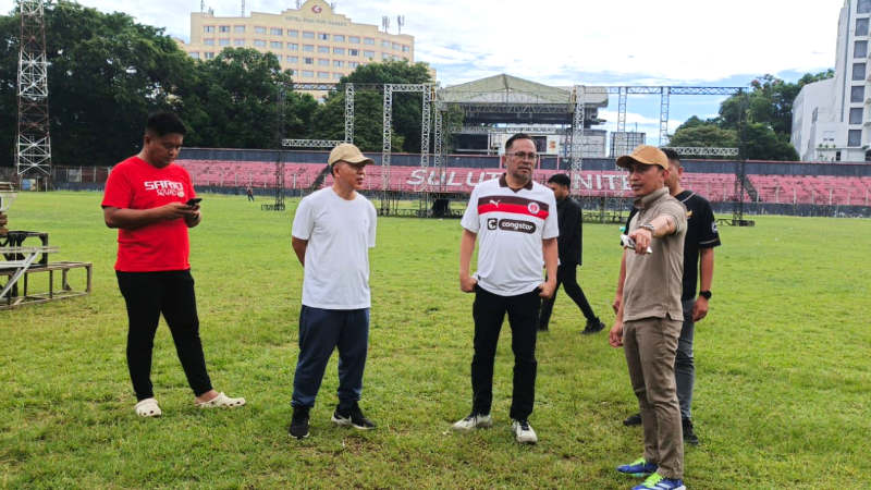 Richard Sualang (kedua kanan) memastikan Stadion Klabat siap jadi arena pembukaan Proprov XII Sulut 2025.