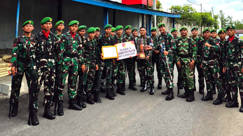 Prajurit Yonzipur 19/YKN dengan piagam penghargaan Juara 3 Lomba Binsat.