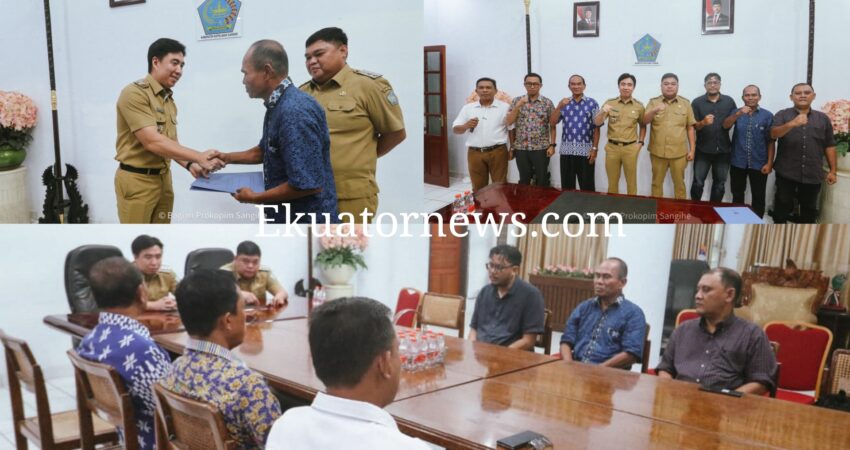 Ekuatornews.com. – Bupati Kepulauan Sangihe Michael Thungari, didampingi Wakil Bupati Tendris Bulahari, secara resmi menyerahkan Surat Keputusan (SK) pengangkatan kepada tujuh orang Staf Khusus Bupati, Selasa (6/1/2026), di Ruang Rapat Bupati.